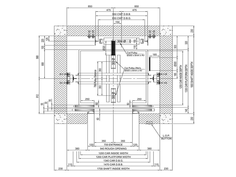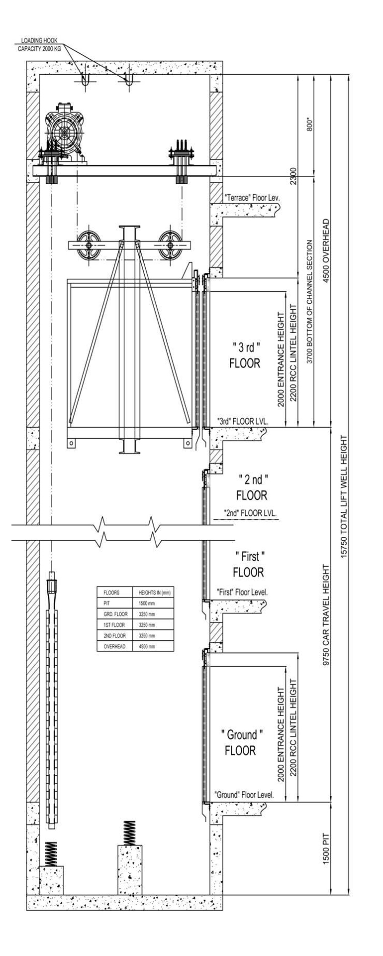 Sl No | Rated Load | Shaft Size (WxD) | Car Size | Door Size | Pit | Over Head | |